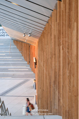 Ce concept de « gare en plein air » cherche à minimiser la sensation de profondeur en guidant le voyageur par la lumière naturelle, qui pénètre jusqu'au niveau des lignes de métro, transformant l'expérience du déplacement souterrain en un parcours spatial unique.